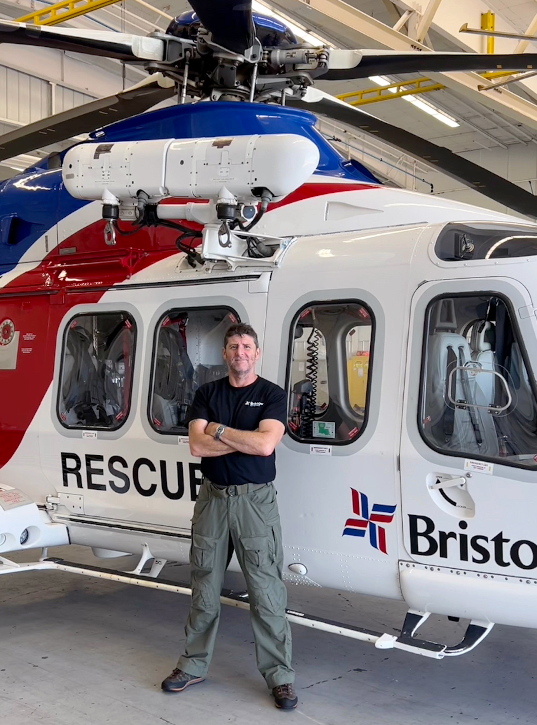 His role today in New Iberia is a line hoist operator and hoist operator instructor for the team. He began working for Bristow not as a U.K. SAR transfer, but after moving to the U.S. in 2020 with his wife, an American from Dallas, Texas. They met while they were both working in Tanzania back in 2013.